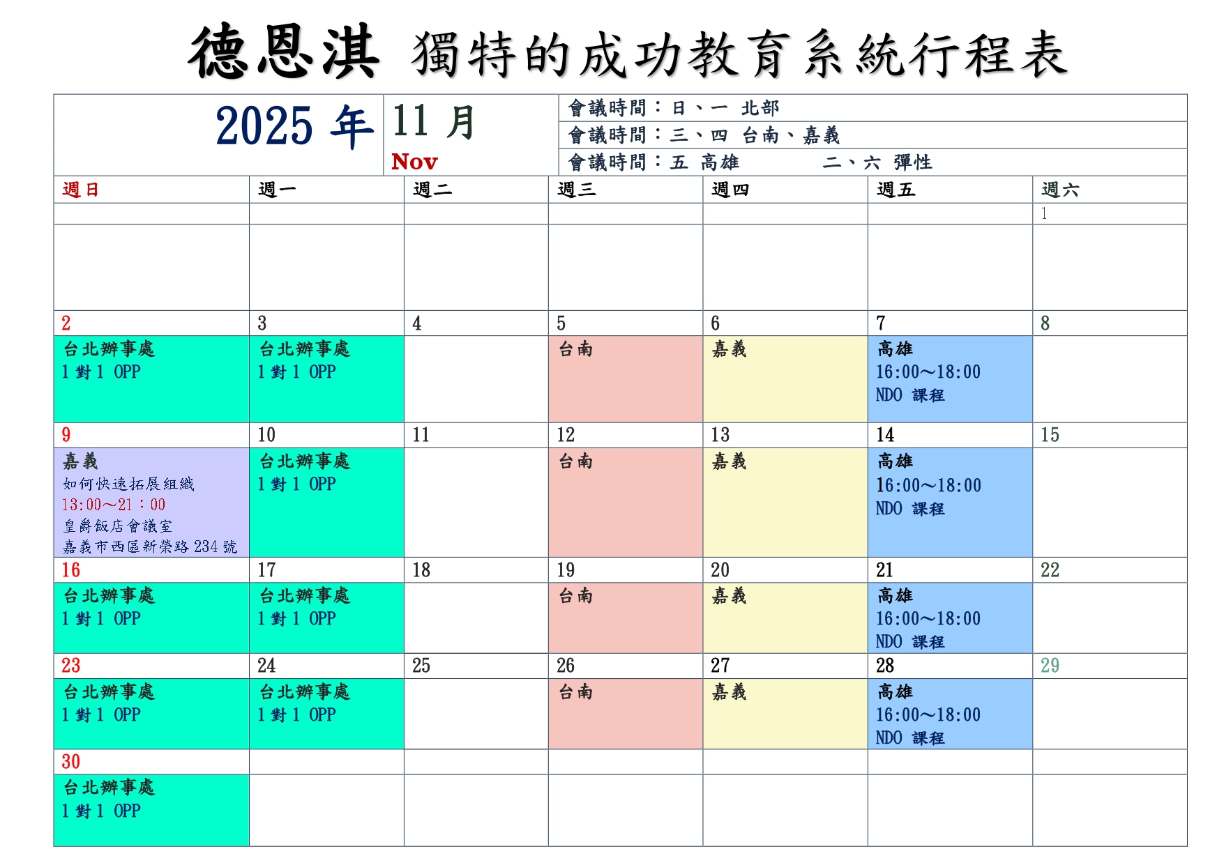 November 2025 DNC Event Calendar for Northern, Central, and Southern Taiwan